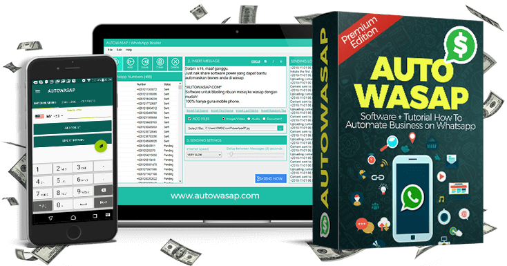 AUTOWASAP merupakan kit Automasi Bisnes di Whatsapp meliputi software serta panduan dengan kit utamanya adalah Autowasap Blaster. Fungsi hebat yang terkandung dalam kit ini termasuk aplikasi yang boleh hantar ribuan mesej secara sistematik, broadcast mesej ke group, extract nombor dari senarai chat atau group wasap, auto reply mesej wasap, auto save nombor wasap dan banyak lagi!